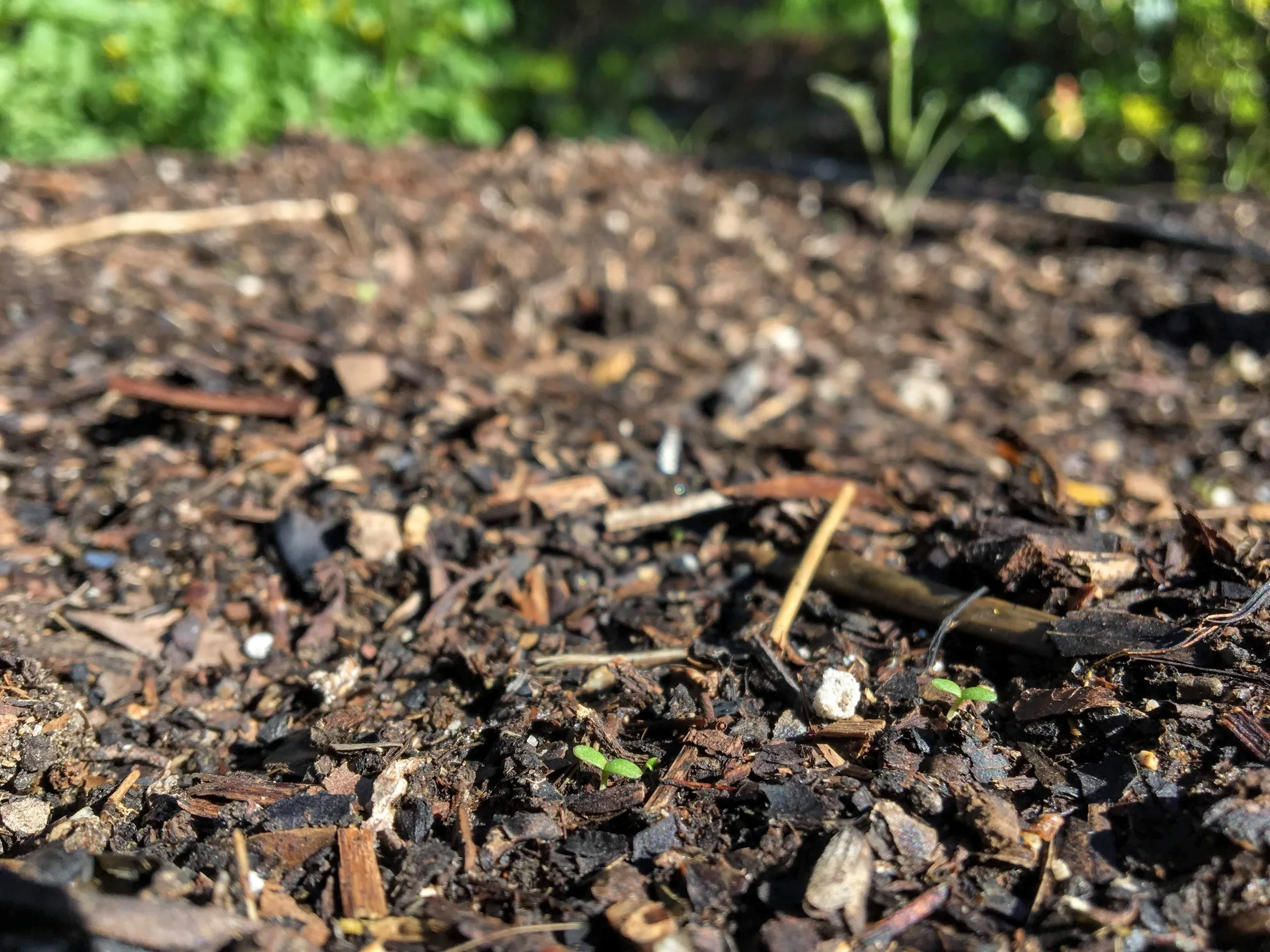 After a period of active, hot decomposition, the compost gets moved to the third bin where it slowly cools down as the organisms finish decomposing the greens and browns. From there, we sift out the larger sticks to be used as nutrient-rich mulch, and use the finer material as compost in our veggie beds and newly planted perennials.