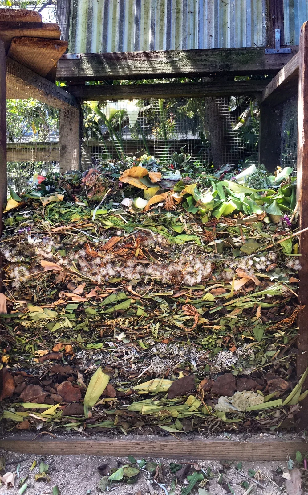 It is a closed-loop system where, over time, clippings and debris from the garden turn into compost, a nutrient-rich soil amendment through the process of decomposition.