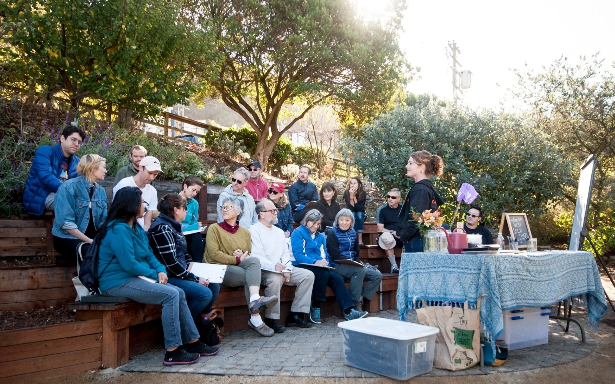 Classes are held outside in our teaching garden. You should bring: